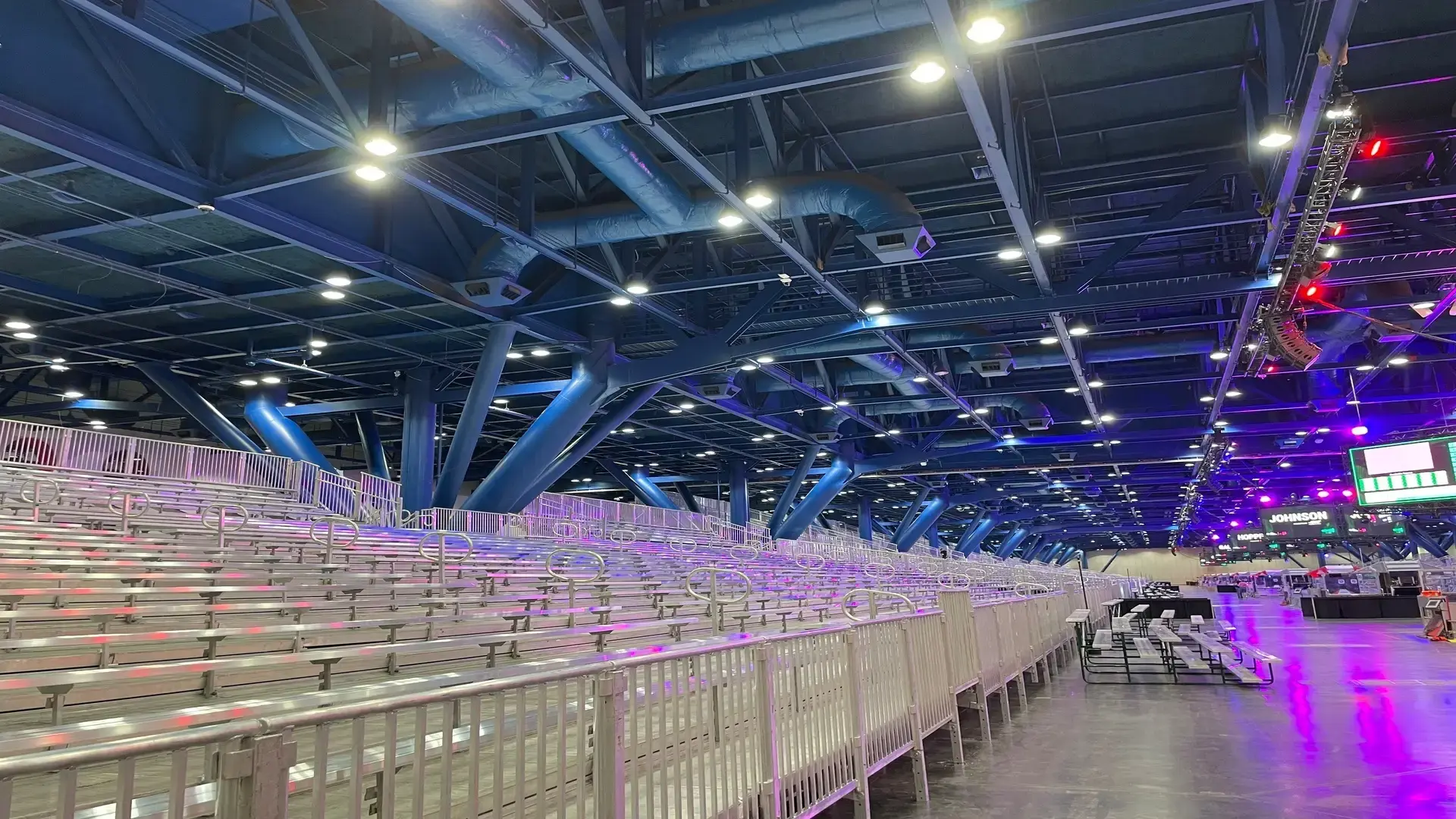 To support clear broadcast sightlines and organized crowd flow, 22,000 elevated tip-up and bench seats were installed in a complex environment on a compressed schedule and removed quickly and cleanly once the event concluded.