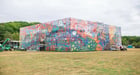 InProduction colored mesh scenic treatments installed at FORMAT Music Festival to enhance brand presence across structures and sightlines.