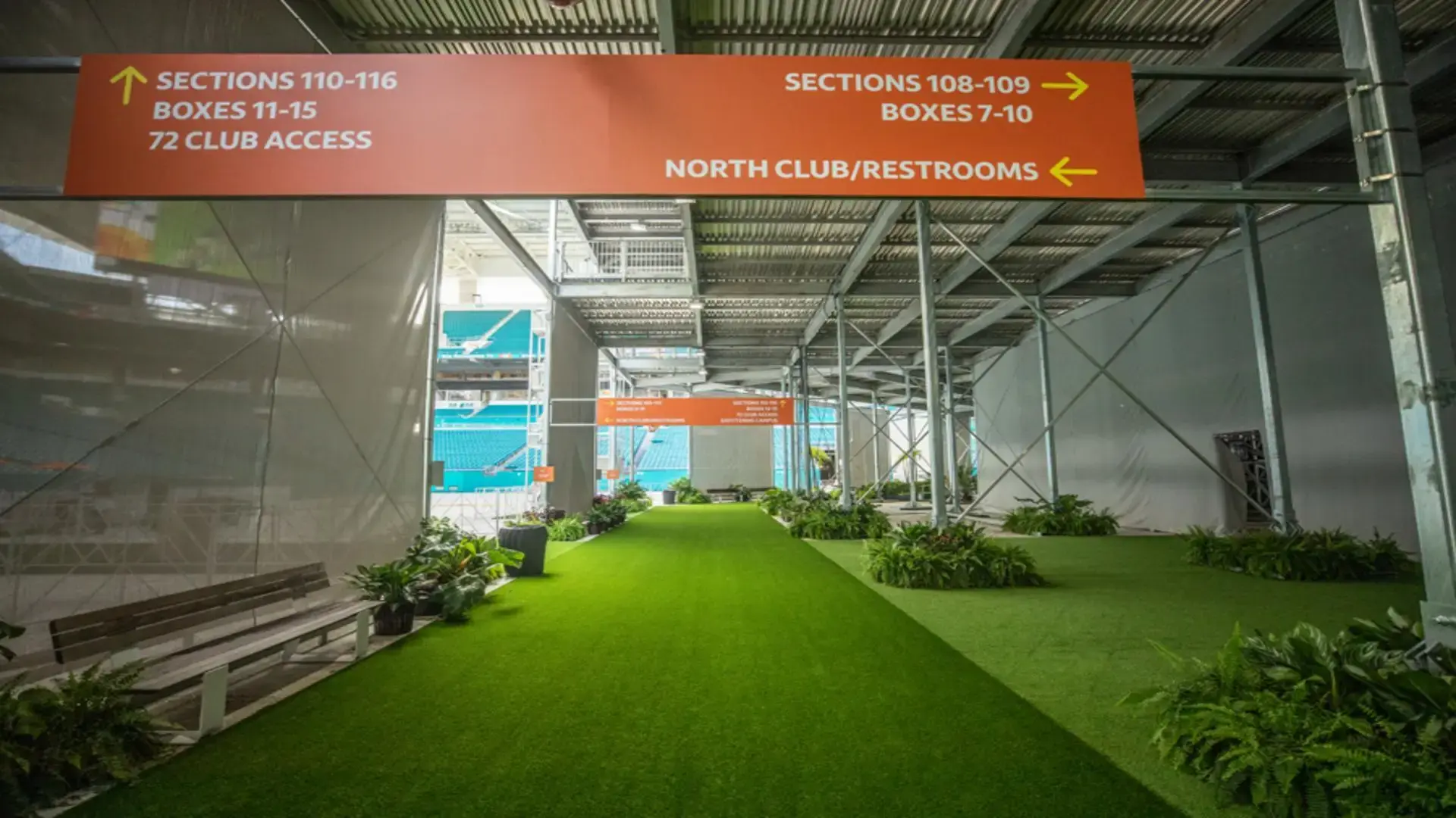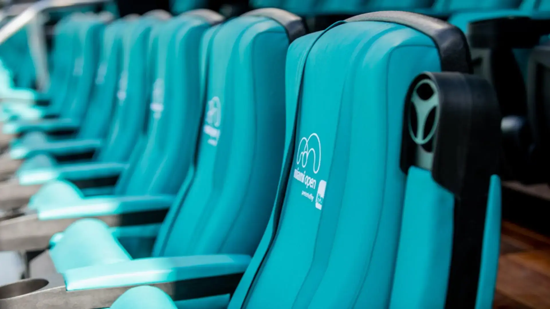 Each year, the interior of Hard Rock Stadium is transformed into a full stadium court, complete with 6,000 custom-colored seats, premium front-row and suite chairs, and mid-level suites supported by modular press boxes.