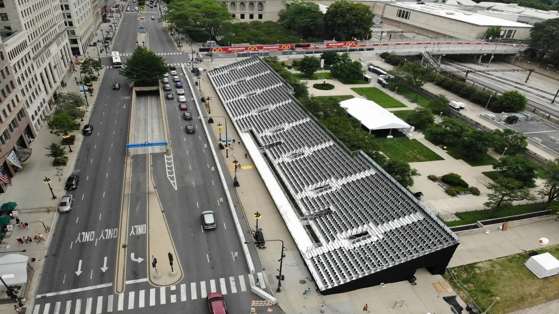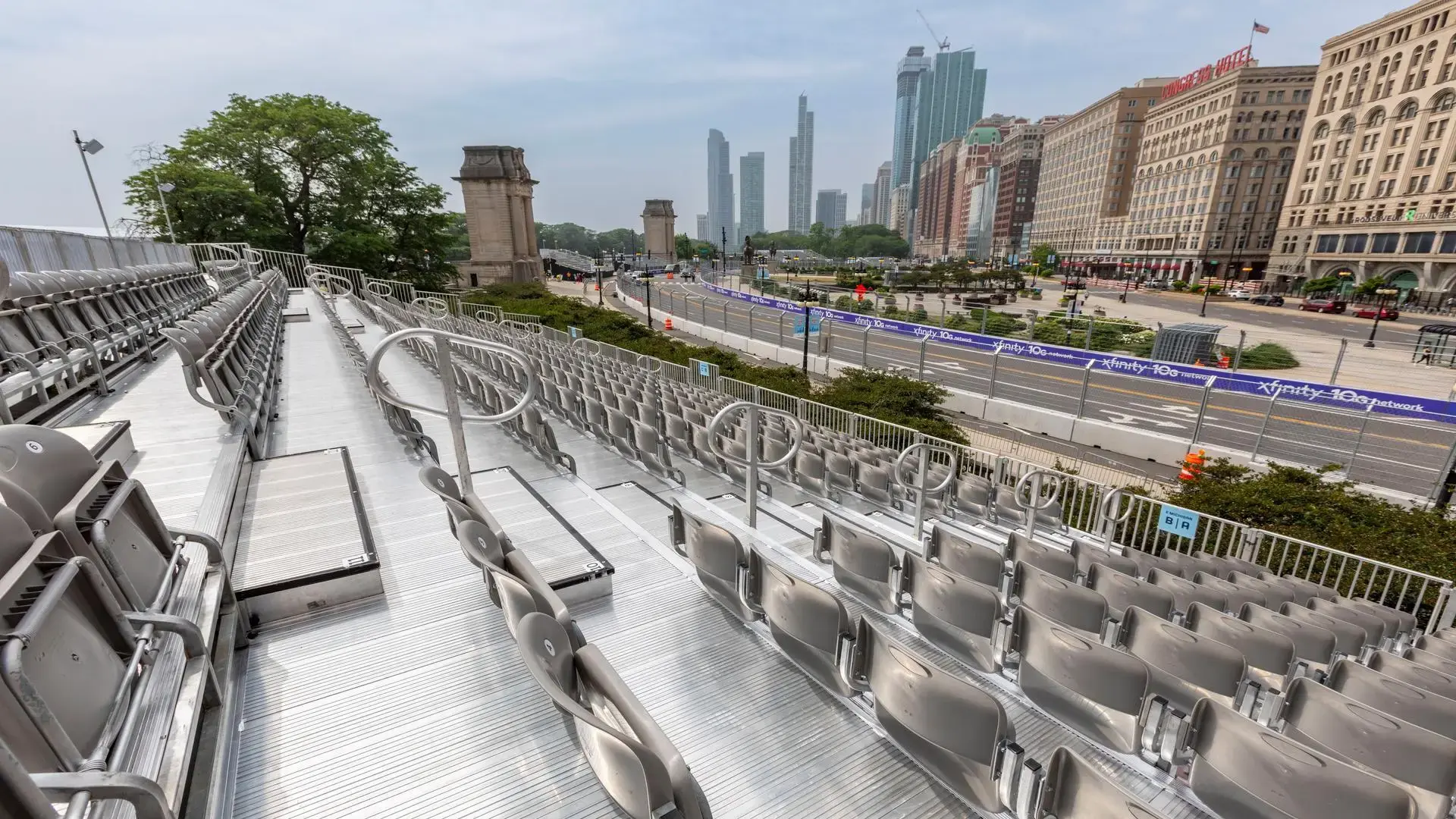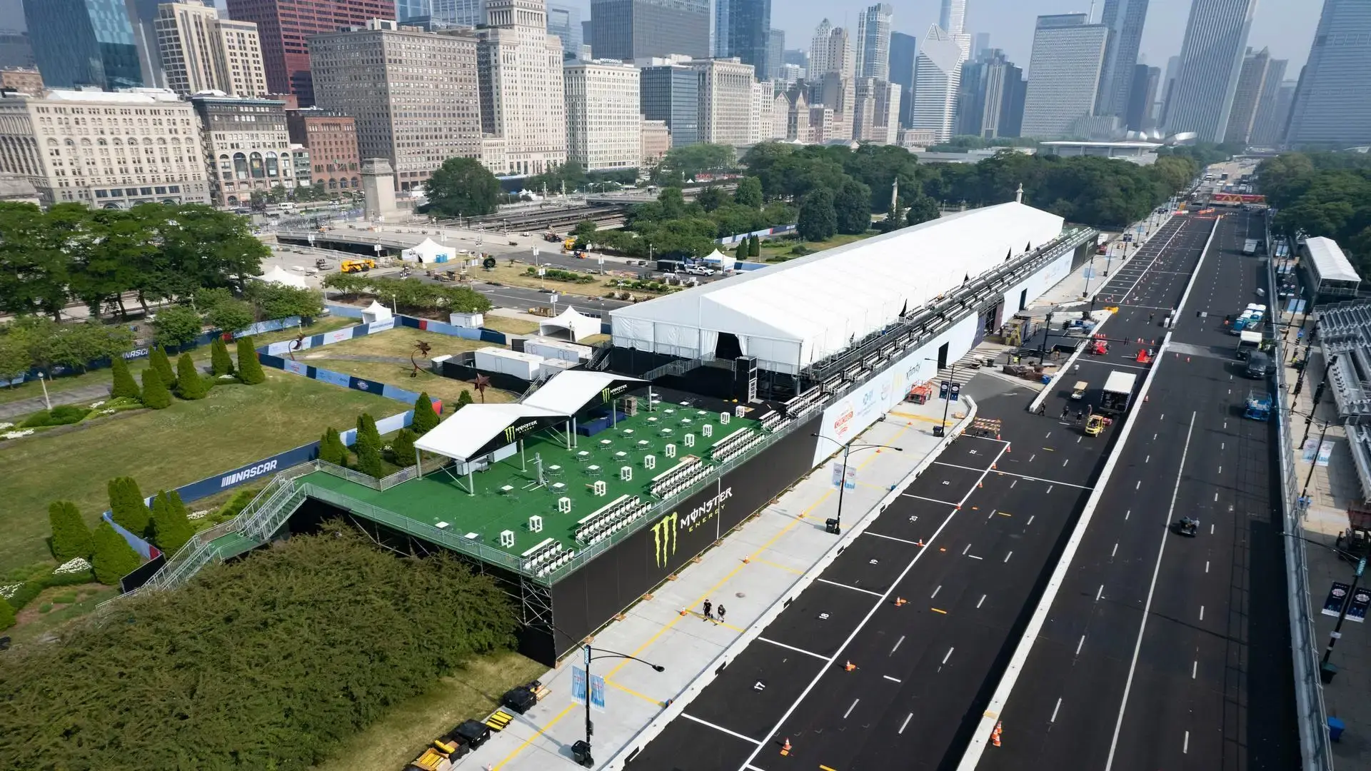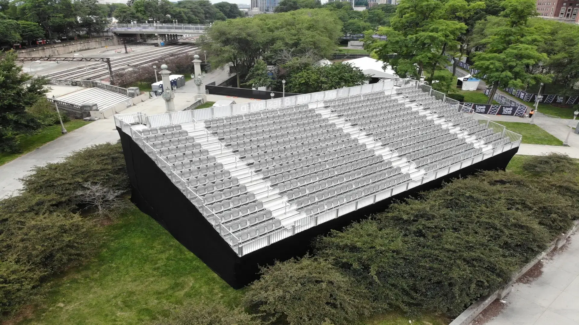 To convert downtown Chicago into a race-ready environment, grandstands and multi-level hospitality decks were installed throughout the city streets, creating a high-energy venue with modular speed and precision.