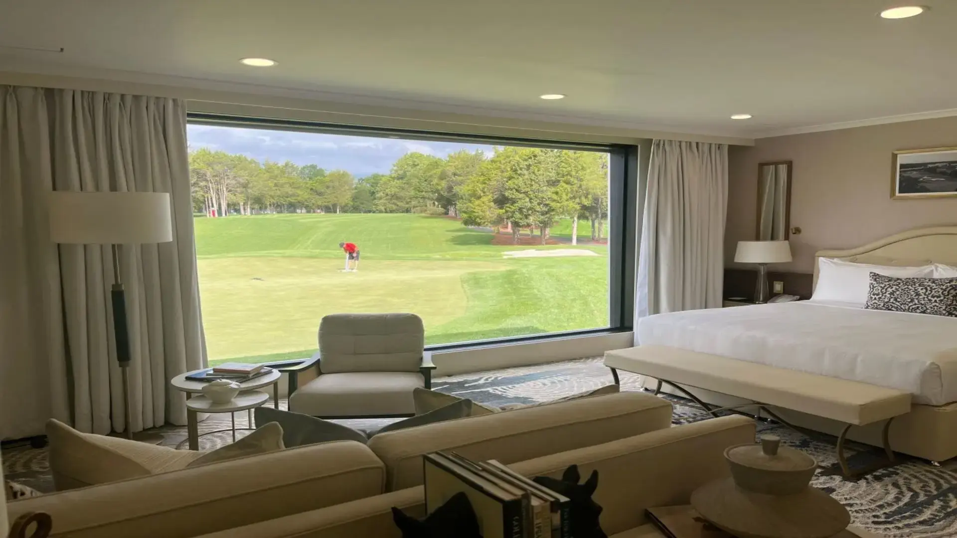 To create an energized, fan-focused tournament environment, grandstand seating and hospitality suites were installed throughout the course. The build also featured a Hilton-branded activation with a full “hotel room” experience on the course.
