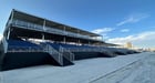 InProduction custom modular grandstands installed at AV Alta FC’s Lancaster Municipal Stadium, providing an 800-seat sideline section and steep SRO supporters’ stand for immediate seating capacity.