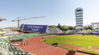 To capture the intensity and detail of world-class athletics, temporary seating was placed on the field, giving spectators closer sightlines and elevated views.
