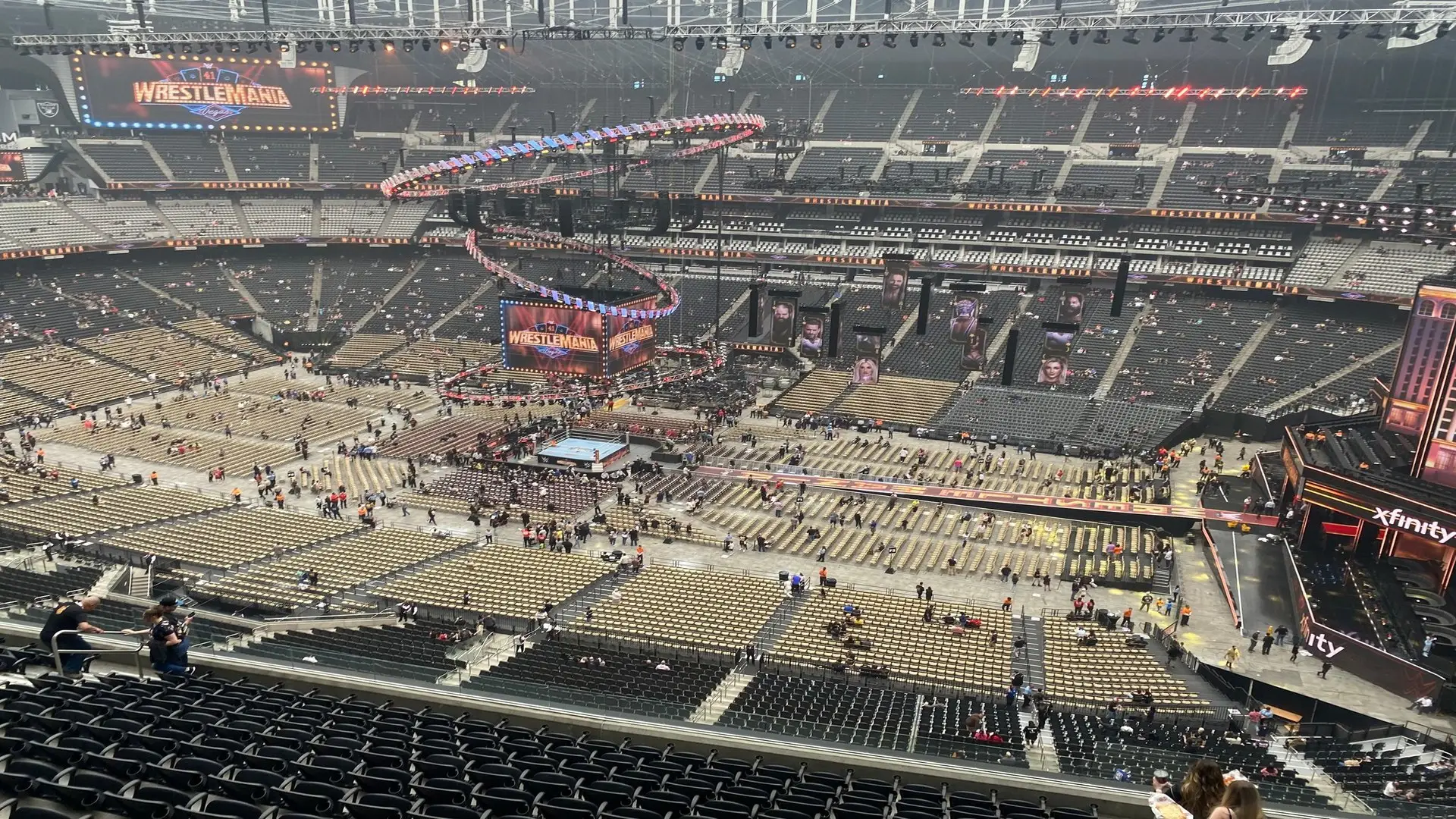 InProduction custom audience risers and premium seating for WrestleMania, configured to provide 6,800 clear sightline views with every seat oriented toward the main stage.